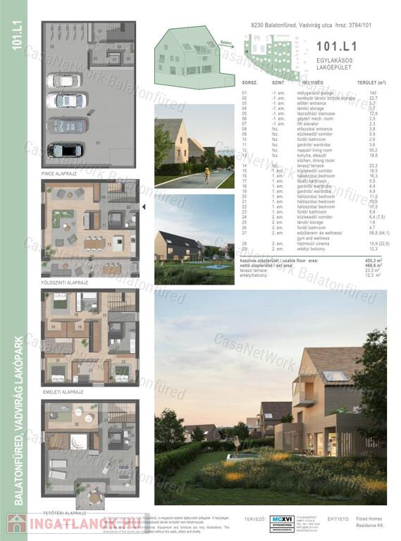 - nettó beltéri alapterülete 453 m2
